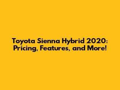 Hey car enthusiasts! Today, we're diving deep into the world of the Toyota Sienna Hybrid 2020, a minivan that's been making waves for its fuel efficiency, spaciousness, and overall practicality. If you're in the market for a family-friendly vehicle that doesn't skimp on features or break the bank, you're in the right place. We'll be breaking down everything you need to know, from the 2020 Toyota Sienna Hybrid price to its standout features, and why it's a smart choice for modern families. Get ready to explore what makes this minivan a top contender in its class.