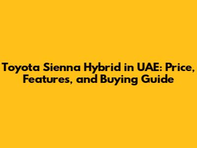 Toyota Sienna Hybrid In UAE: Price, Features, And Buying Guide