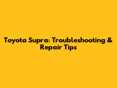 Toyota Supra: Troubleshooting & Repair Tips