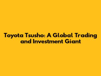 Toyota Tsusho: A Global Trading And Investment Giant