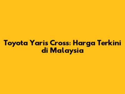 Toyota Yaris Cross: Harga Terkini Di Malaysia
