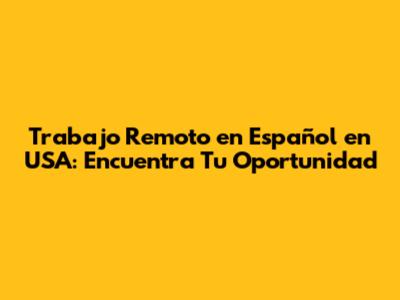 Trabajo Remoto En Español En USA: Encuentra Tu Oportunidad