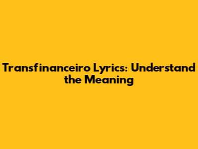 Transfinanceiro Lyrics: Understand The Meaning