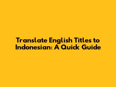 Translate English Titles To Indonesian: A Quick Guide