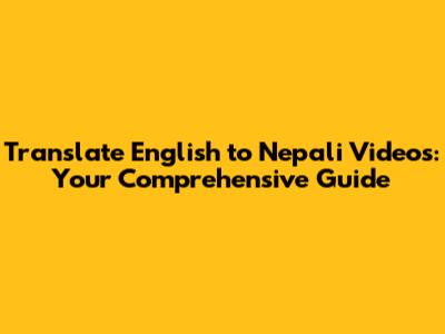 Translate English To Nepali Videos: Your Comprehensive Guide