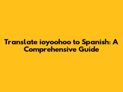 Translate Ioyoohoo To Spanish: A Comprehensive Guide