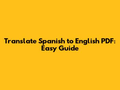 Translate Spanish To English PDF: Easy Guide