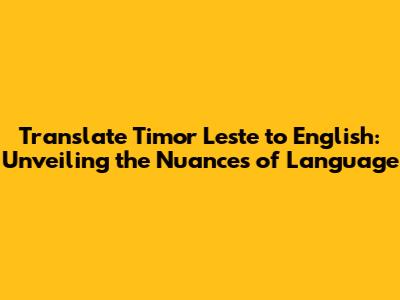 Translate Timor Leste To English: A Comprehensive Guide