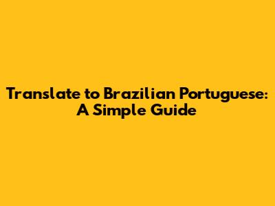 Translate To Brazilian Portuguese: A Simple Guide