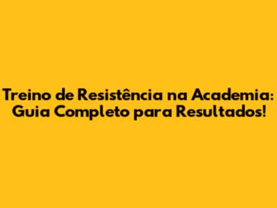 Treino De Resistência Na Academia: Guia Completo Para Resultados!