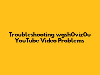 Troubleshooting Wgsh0viz0u YouTube Video Problems