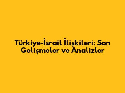 Türkiye-İsrail İlişkileri: Son Gelişmeler Ve Analizler