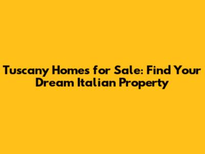 Tuscany Homes For Sale: Find Your Dream Italian Property