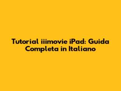 Tutorial Iiimovie IPad: Guida Completa In Italiano