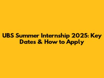 UBS Summer Internship 2025: Key Dates & How To Apply