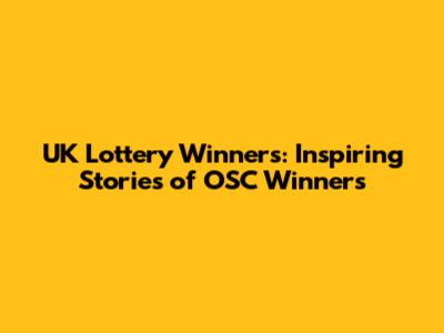 UK Lottery Winners: Inspiring Stories Of OSC Winners