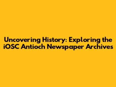 Hey there, history buffs and curious minds! Have you ever wanted to dive deep into the past and uncover the stories that shaped a community? Well, buckle up, because we're about to embark on an exciting journey into the iOSC Antioch Newspaper Archives. This treasure trove of information offers a unique glimpse into the lives, events, and culture of a specific time and place. Imagine being able to read the news, announcements, and opinions of people from decades or even centuries ago. That's the power of newspaper archives! They act like time capsules, preserving the voices and experiences of those who came before us.