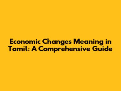 What are Economic Changes? Unpacking the Tamil Meaning