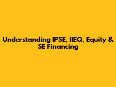 Understanding IPSE, IIEQ, Equity & SE Financing