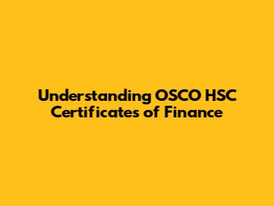 Understanding OSCO HSC Certificates Of Finance