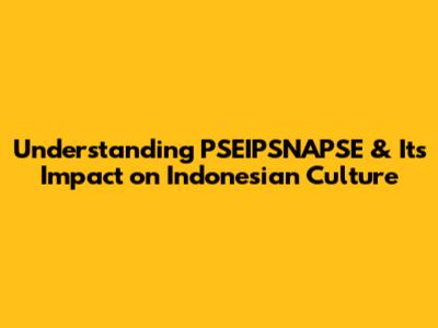 Understanding PSEIPSNAPSE & Its Impact On Indonesian Culture