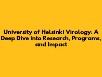 University Of Helsinki Virology: Research, Programs & Impact