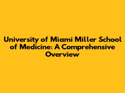 University Of Miami Miller School Of Medicine: A Comprehensive Overview