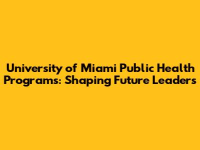 University Of Miami Public Health Programs