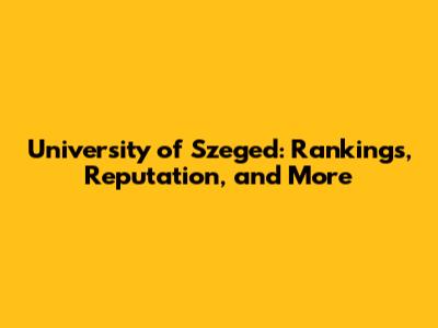 University Of Szeged: Rankings, Reputation, And More