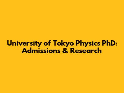 University Of Tokyo Physics PhD: Admissions & Research