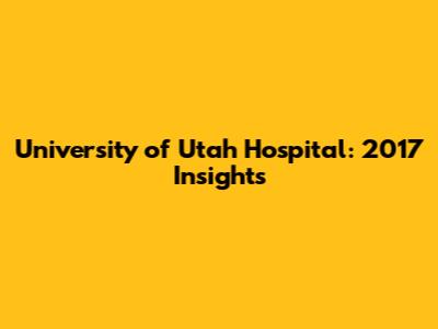 University Of Utah Hospital: 2017 Insights