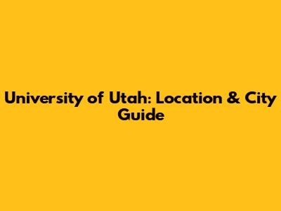 University Of Utah: Location & City Guide