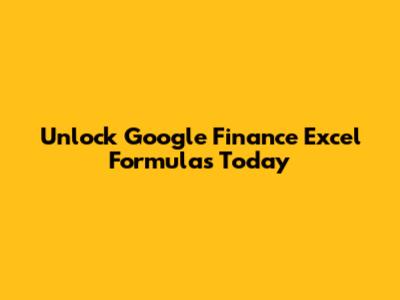 Unlock Google Finance Excel Formulas Today