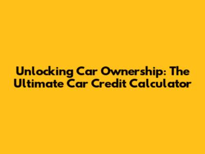 Unlocking Car Ownership: The Ultimate Credit Calculator