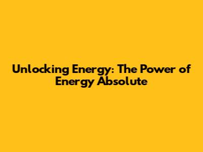 Unlocking Energy: The Power Of Energy Absolute