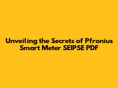 What Exactly is the Pfronius Smart Meter SEIPSE PDF?