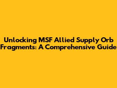 Unlocking MSF Allied Supply Orb Fragments: A Comprehensive Guide