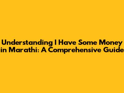 Unlocking The Marathi Meaning Of 'I Have Some Money'