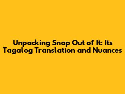 Unlocking The Meaning: 'Snap Out Of It' In Tagalog