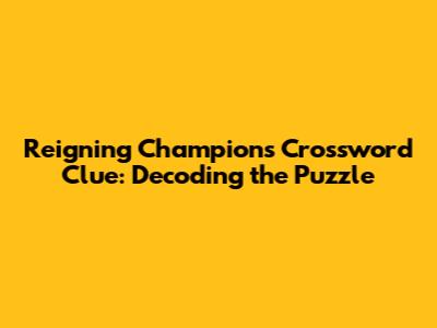 First things first, what does "reigning champions" even mean? In a nutshell, it refers to the team or individual that currently holds the title of champion in a particular sport or competition. Think of it like this: they're the ones who won the last championship and haven't been dethroned yet. The key here is the present tense – it's about the current holders of the title. The crossword clue often plays on this fundamental meaning.