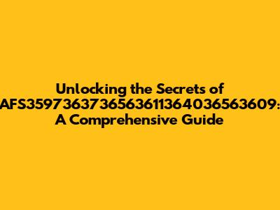 Unlocking The Secrets Of AFS3597363736563611364036563609: A Comprehensive Guide