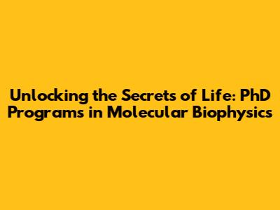 Unlocking The Secrets Of Life: PhD Programs In Molecular Biophysics