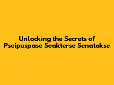 Unlocking The Secrets Of Pseipuspase Seakterse Senatokse