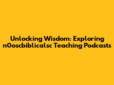 Unlocking Wisdom: Exploring N0oscbiblicalsc Teaching Podcasts