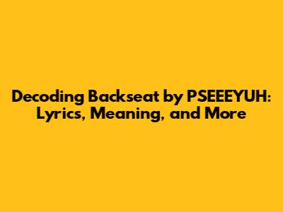 Unpacking 'Backseat' By PSEEEYUH: Lyrics, Meaning, And More