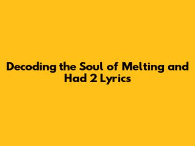 Unpacking The Heart Of 'Melting' And 'Had 2': A Lyric Deep Dive