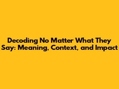 Unpacking The Meaning Of 'No Matter What They Say'