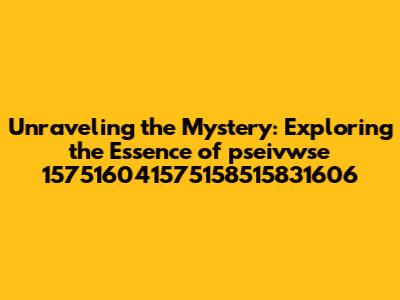 Unraveling The Mystery: Exploring The Essence Of Pseivwse 157516041575158515831606