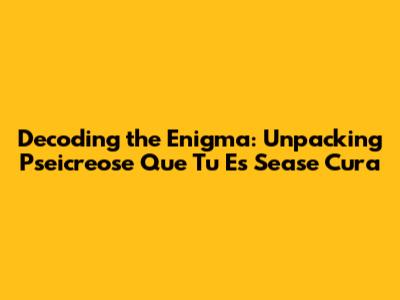 Decoding the Enigma: Unpacking "Pseicreose Que Tu Es Sease Cura"
