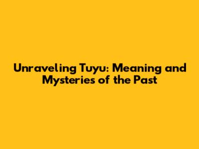 Unraveling 'Tuyu': Meaning And Mysteries Of The Past